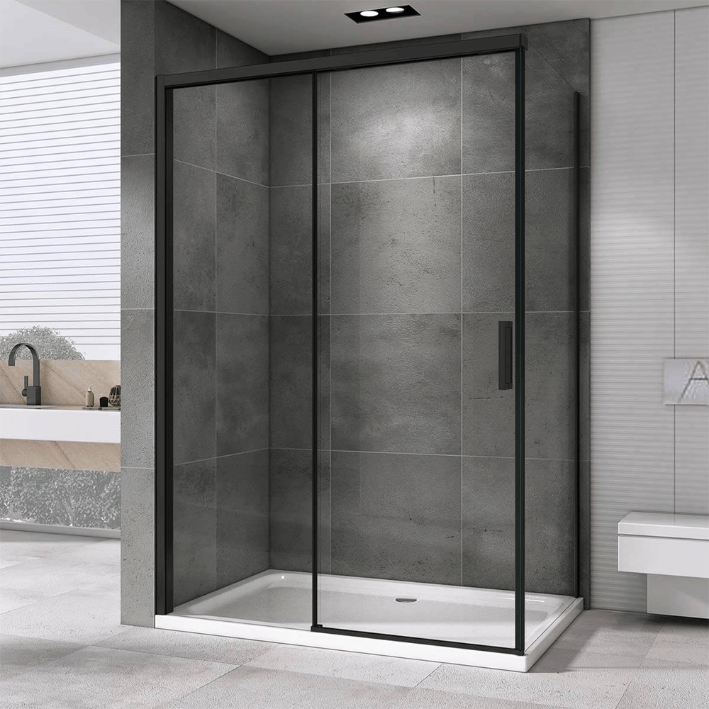 Kabina prysznicowa przesuwna czarna DS1500 B LEYDEN – cichy domyk
