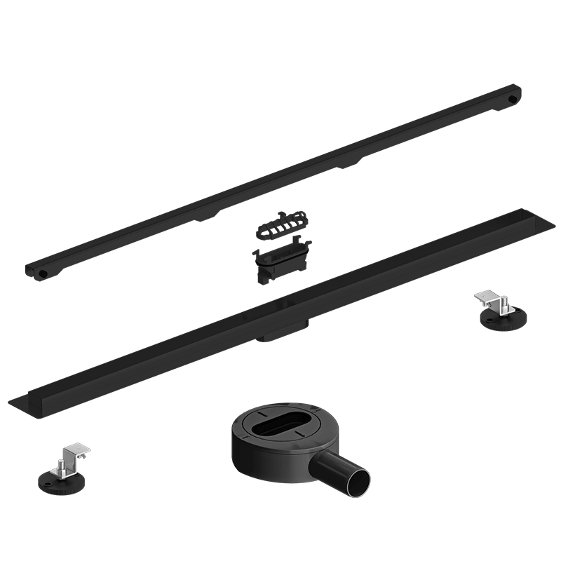 Odpływ prysznicowy liniowy CZARNY wąski SLIM obrotowy syfon LEYDEN